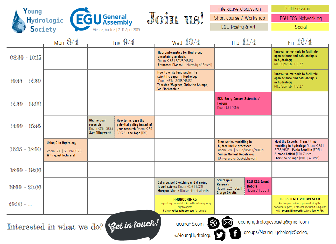 More information on Hydrodrinks will be available during the EGU week! Follow YHS on Twitter (@YoungHydrology) and Facebook!