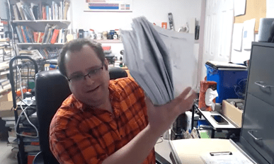 Nicholas Kinar and printouts of scientific papers to be read for the Hydrology Paper of the Day Twitter page.